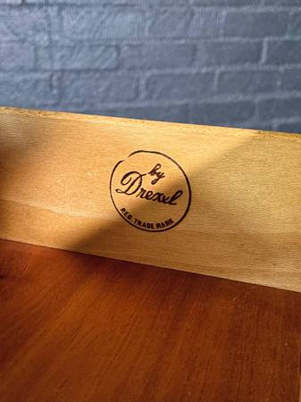 Fun Historical Fact: The Biscayne line was actively produced by Drexel in the mid-1950s (printed ads from 1955 reference both “Circle D” and “Biscayne” model pages). While definitive attribution remains elusive, many specialists note that the stylistic DNA of the Biscayne collection strongly parallels that of designer Milo Baughman’s work for Drexel and similar firms, indicating the line may have been influenced by or derived from Baughman’s signature approach.