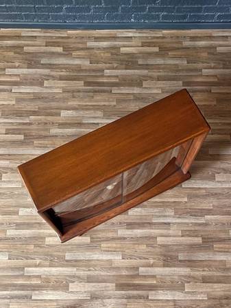 Fun Historical Fact: The bow-front shape seen here was inspired by the aerodynamic lines of post-war automobiles and jet planes, which heavily influenced furniture design in the 1950s and ’60s. Designers of the era believed that even living room furniture should look like it was built for motion, giving everyday objects a subtle sense of speed and optimism.