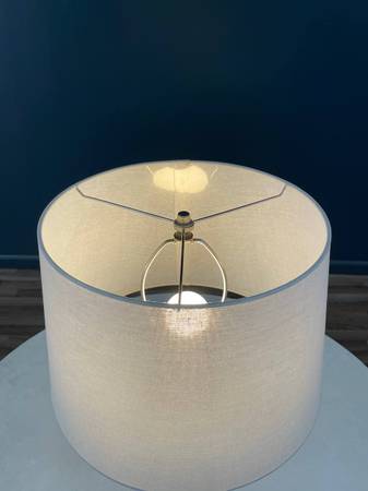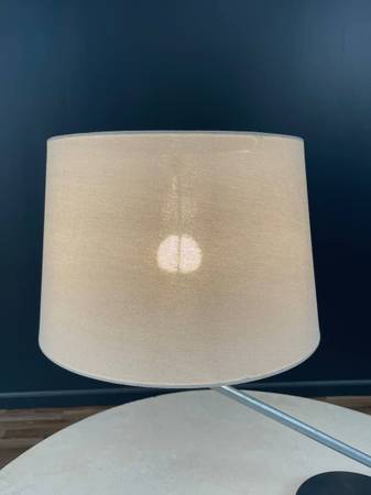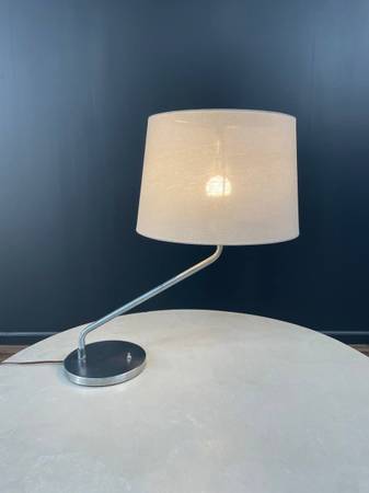Mid-Century Modern Chrome Table Lamp, c.1970’s $495 - Newly Rewired, New Linen Shade Dimensions: 23.50”H x 8”W x 16.75”D Shade: 10"H x 15"W x 15"D Local Delivery Is Available 👉...