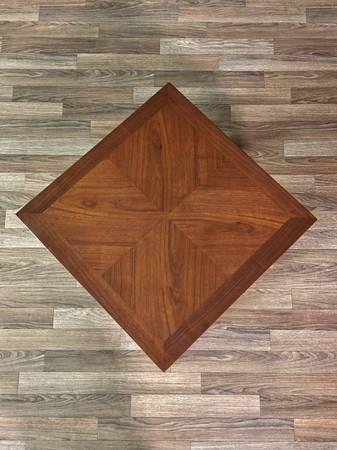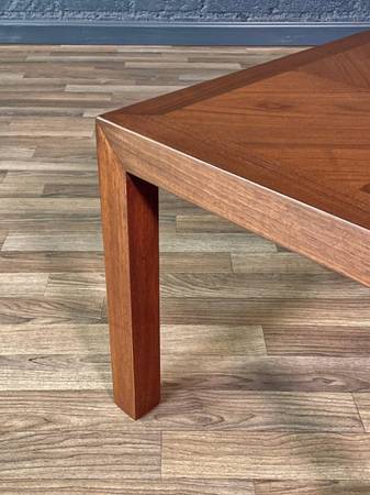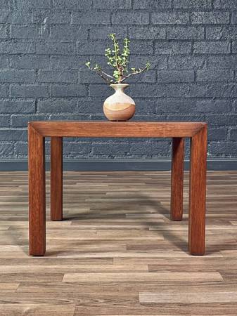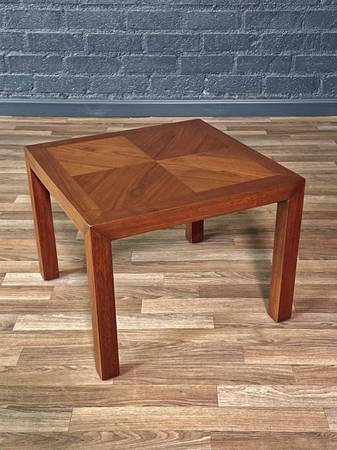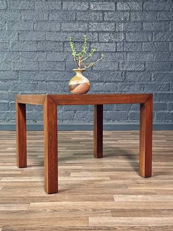 This Mid-Century Modern Parsons Style Walnut Side Table by Lane embodies the clean geometry and refined simplicity that defined 1960s American design. Crafted from richly grained walnut, its crisp mitered edges and seamless joinery highlight the precision and quality of Lane’s craftsmanship. The square silhouette offers a versatile elegance, perfect as an end table, lamp table, or minimalist accent in both modern and classic interiors. Its expertly refinished surface restores the warmth and depth of the original walnut tone, allowing the natural beauty of the wood to take center stage. Sleek yet substantial, it’s a timeless piece that captures the spirit of mid-century sophistication.