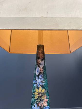 Mid-Century Modern Pyramid Style Floor Lamp by Sascha Brastoff, c.1960’s $750 - Original Vintage Condition Dimensions: 55"H x 8.25"W x 6.50"D Shade: 24.50"H x 18.25"W x 14"D Local Delivery Is...