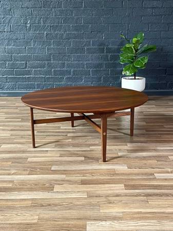 Mid-Century Modern Round Walnut Coffee Table by Stanley, c.1960’s