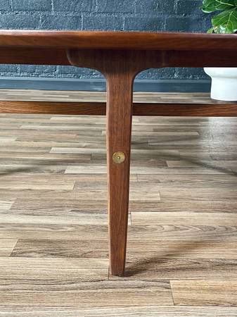Expertly refinished, this Mid-Century Modern coffee table by Stanley Furniture Co. is a perfect blend of elegance and functionality. The rich walnut grain on the round top creates a warm, inviting surface, while the sculpted legs and cross-brace design provide both stability and visual interest. Brass accents add a subtle touch of sophistication, enhancing the clean, minimalist aesthetic of the era. Designed with timeless craftsmanship, this piece seamlessly complements a variety of interiors, from classic Mid-Century Modern to contemporary spaces. Whether used for entertaining or as a stylish focal point, this table brings effortless charm to any living space.