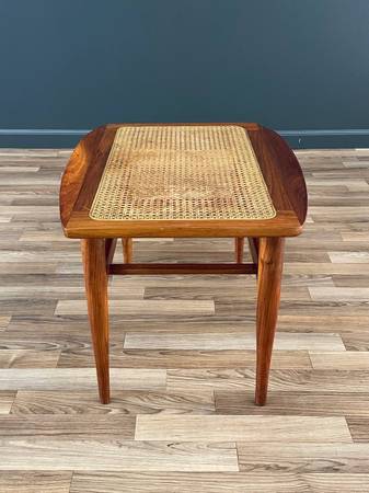 Mid-Century Modern Sculpted Walnut & Cabe Stool, c.1960’s -...