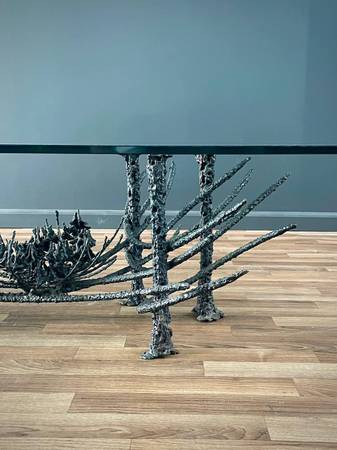 Mid-Century Modern Brutalist Coffee Table by Daniel Gluck $2,250 - New Glass Top, Original Condition On Metal Dimensions: 15.50”H x 56”W x 30”D Local Delivery Is Available 👉...