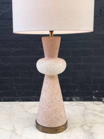 Mid-Century Modern Hourglass Ceramic & Brass Table Lamp, c.1960’s -...