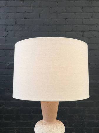 Mid-Century Modern Hourglass Ceramic & Brass Table Lamp, c.1960’s $350 - Newly Rewired, New Linen Shade Dimensions: 30”H x 6.50” W x 6.50” D Shade 10”H x 15” W x 15” D Local Delivery Is...