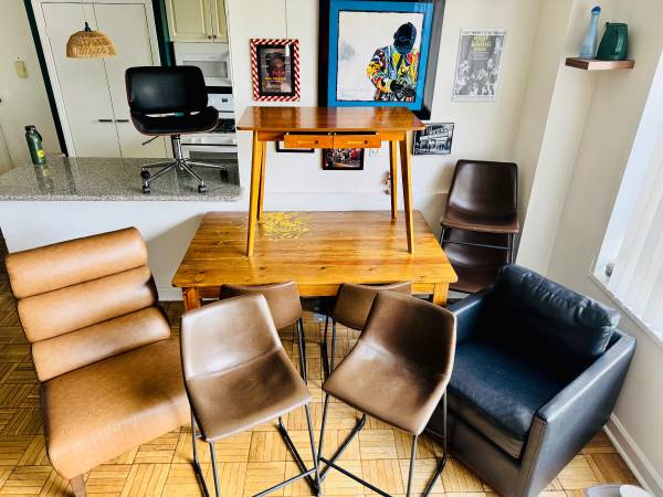 Moving out of state so everything must go!! I have Art, Chairs, Lamps, Side Tables, Nightstands and a Coffee Table, a Desk, Dining Table, Entertainment Consoles, Fire TV (with soundbar & sub woofer), Turntable w/Speakers, Bookshelf (all pictured, books & plants not included), PLUS MORE!!