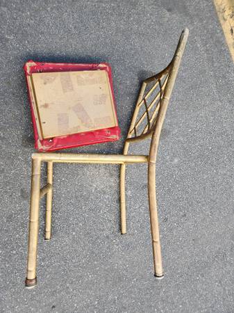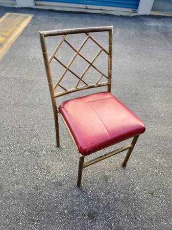 Pair (2) Chinoiserie Hollywood Regency MCM Faux Bamboo Gold Painted Steel Metal Chairs Phyllis Morris Style