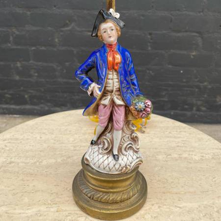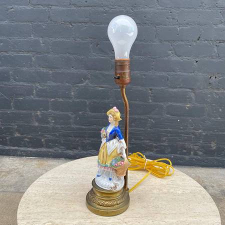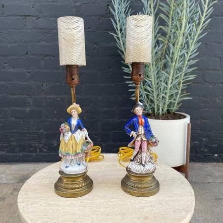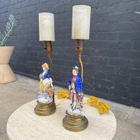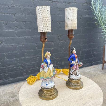 Pair of Antique Porcelain Figure Table Lamps, c.1940’s $350 set - Newly Rewired Dimensions: 17.26”H x 4”W 4.25”D Materials: Porcelain Local Delivery Is Available 👉 www.vintagesupplystore.com 👈...