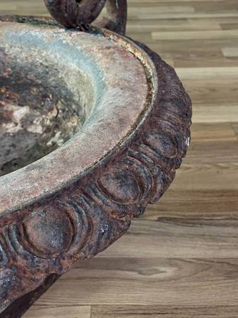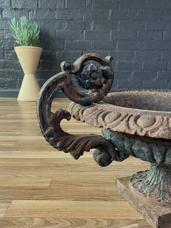 Pair of French Neoclassical Cast Iron Garden Urns, c.1920’s $1,800 pair - Original Vintage Condition Dimensions: 13.50”H x 23.75”W x 18.25”D Local Delivery Is Available 👉 www.vintagesupplystore.com...