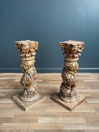 Pair of Italian Rococo Painted and Parcel Gilt Columns, c.1920’s $795 pair - Original Vintage Condition Dimensions: 25”H x 10.50”W x 10.50” D Local Delivery Is Available 👉 www.vintagesupplystore.com...