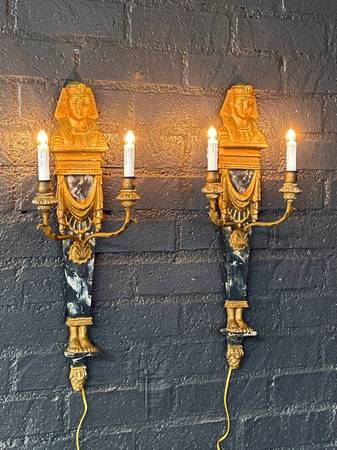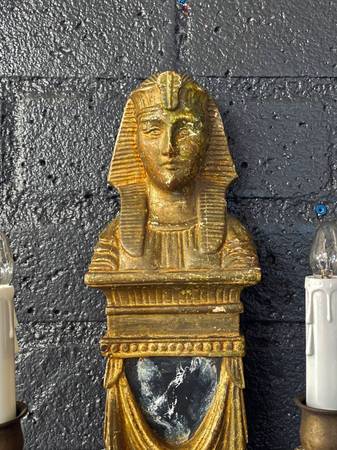 Fun Historical Fact: The Egyptian Revival style first gained popularity in Europe during the early 19th century after Napoleon’s Egyptian campaign, and it saw renewed interest in the 1920s following the discovery of King Tutankhamun’s tomb. Italian artisans carried the tradition into the mid-20th century, creating decorative works like these sconces that combined exotic symbolism with neoclassical refinement.