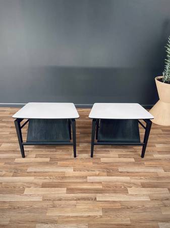Pair of John Keal Magazine Side Tables for Brown Saltman, c.1950’s $950 pair - Original Vintage Condition, Formica Tops Show Wear Dimensions: 21”H x 28”W x 16”D Local Delivery Is Available 👉...