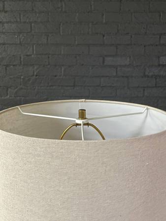 Pair of Mid-Century Modern Gesso & Brass Accent Table Lamps, c.1960’s $450 pair - Newly Rewired, New Shades Dimensions: 30.25”H x 8.75”W x 8.75”D Shade: 10"H x 13"W x 13"D Local Delivery Is...