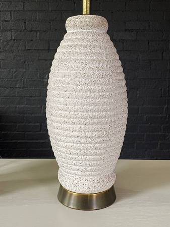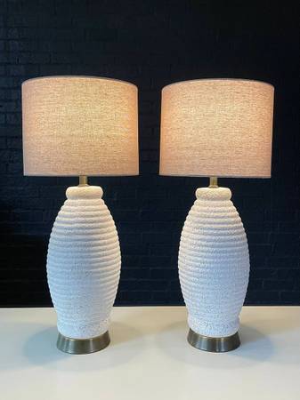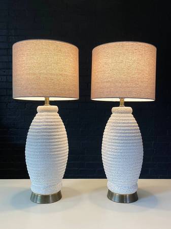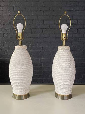 Pair of Mid-Century Modern Gesso & Brass Accent Table Lamps,...