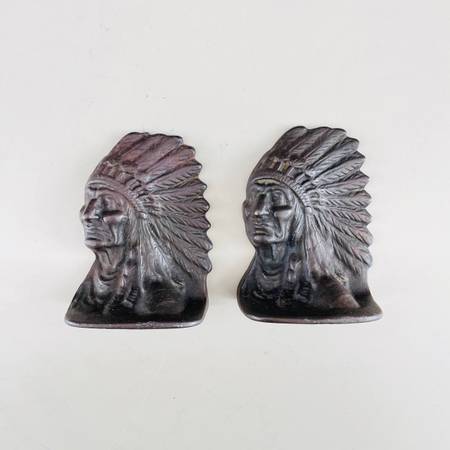 Pair of Vintage Iron Native American Indian Bookends , c.1980’s -...