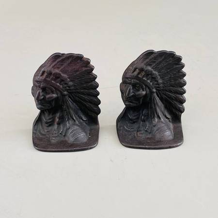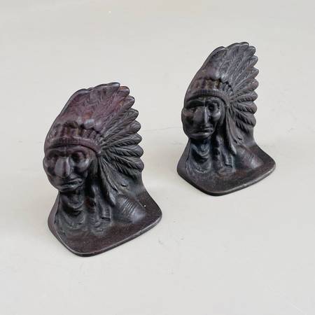 Pair of Vintage Iron Native American Indian Bookends , c.1980’s $175 pair - Original Vintage Condition Dimensions: 4”H x 3”W x 2”D Local Delivery Is Available 👉 www.vintagesupplystore.com 👈...