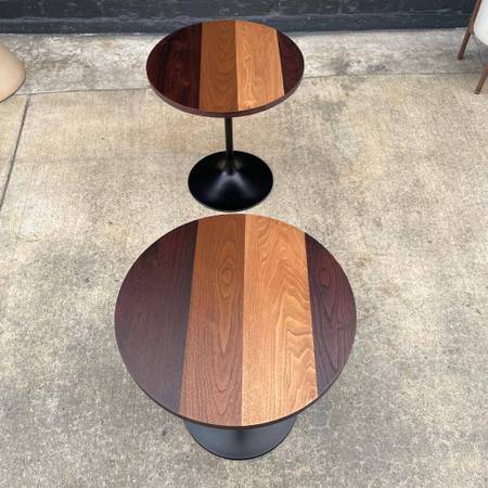 Pair of Vintage Multi-Wood Tulip Style Side Tables 2x