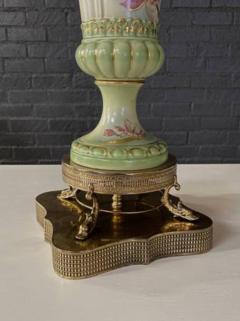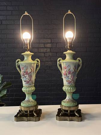 Pair of Vintage Pair of Green Porcelain Urn Shape Table Lamps, c.1960’s $450 pair - Original Vintage Condition Dimensions: 34”H x 8”W x 8”D Local Delivery Is Available 👉 www.vintagesupplystore.com 👈...