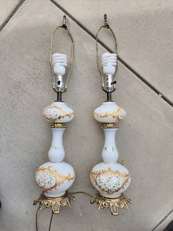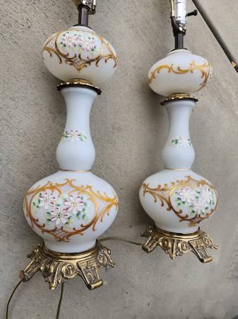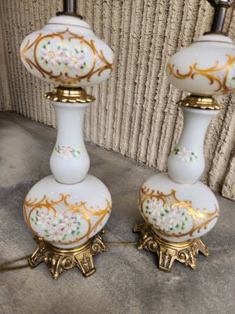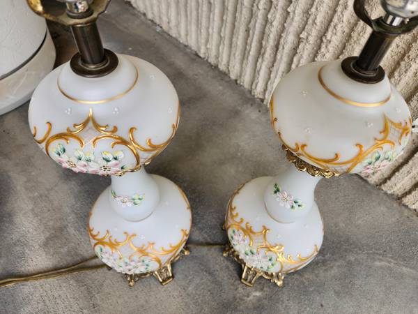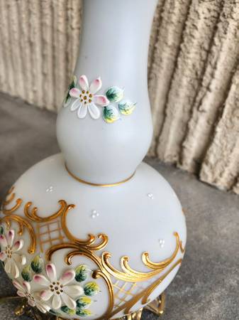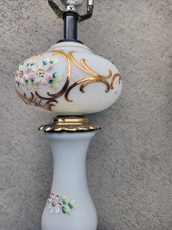 Vintage Hollywood Regency White Gold Floral Painted Lamp