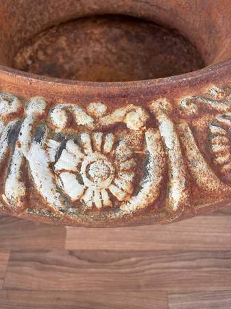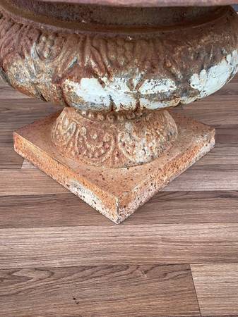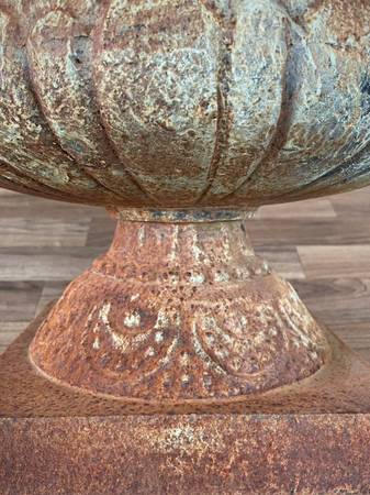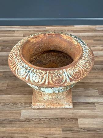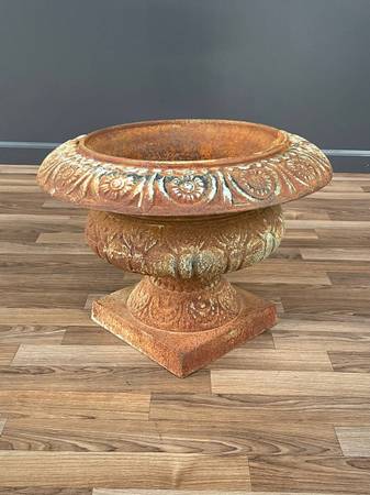 Patinated Cast Iron Urn Planter Coastal Rustic Farmhouse, c.1950’s -...