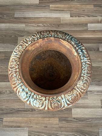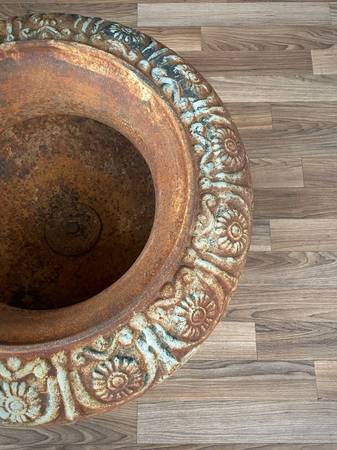 Patinated Cast Iron Urn Planter Coastal Rustic Farmhouse, c.1950’s $695 - Original Vintage Condition Dimensions: 15.50”H x 20.50”W x 20.50”D Local Delivery Is Available 👉 www.vintagesupplystore.com...