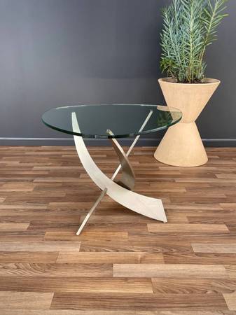 Post Modern Abstract Steel & Glass Side Table by Carl Muller, c.1980’s $495 - Original Vintage Condition Dimensions: 21”H x 28”W x 28”D Local Delivery Is Available 👉 www.vintagesupplystore.com 👈...