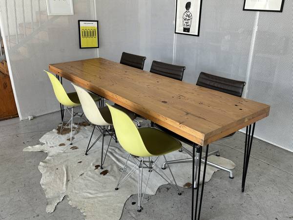 Current designs shown with stainless steel hairpin legs for a modern, minimalist touch