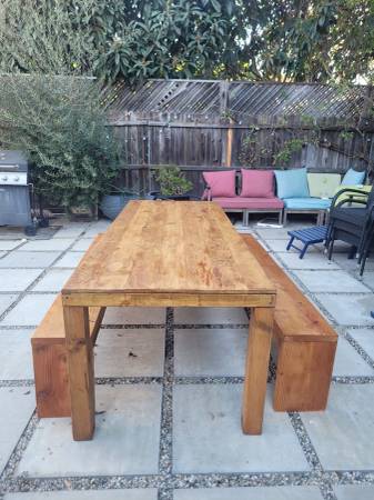 Reclaimed wood handcrafted table and TWO bench set made from vintage locally sourced wood
