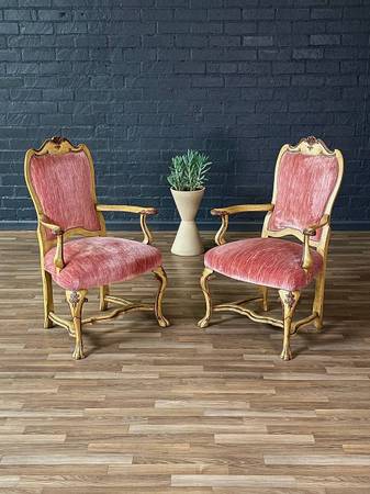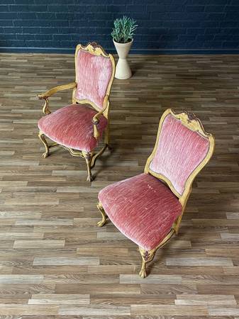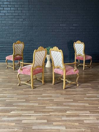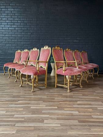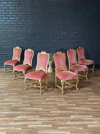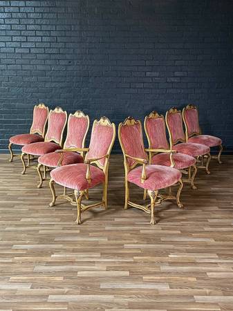 Set of 8x French Style Painted & Carved Wood Dining Chairs, c.1950’s $1,595 set - Original Vintage Condition Dimensions: 41.50”H x 26.50”W x 25”D Seat Height 20" Local Delivery Is Available 👉...