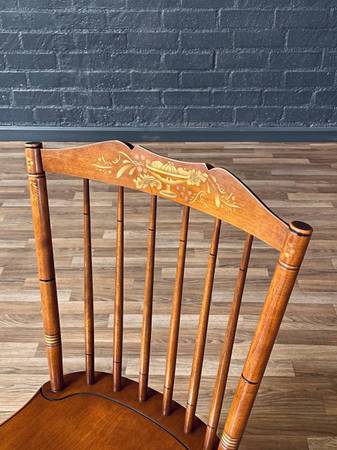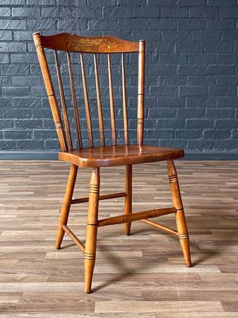 Fun Historical Fact: Lambert Hitchcock founded his company in 1818 in Riverton, Connecticut, pioneering mass-produced stenciled furniture that became iconic across America. By the mid-20th century, his designs were revived during the Colonial Revival movement, reconnecting postwar homes with the craftsmanship and symbolism of early American life.