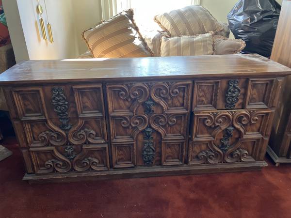 Set of large drawers. Part of a garage/estate sale with furniture, art, household items, etc.