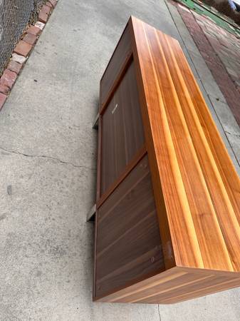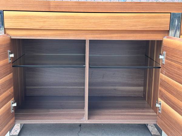 Sierra-2 mid century modern walnut sideboard credenza in great condition dimensions in the pictures one drawer four cabinets in side glass shelves. ‼️SERIOUS BUYERS ONLY ‼️ DELIVERY 🚚 AVAILABLE.