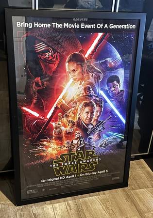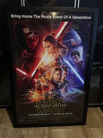 Star Wars The Force Awakens Single Sided 26"x40" Home Video Release Promo Poster *Rare 28” x 42” frame with glass weights 12 lbs