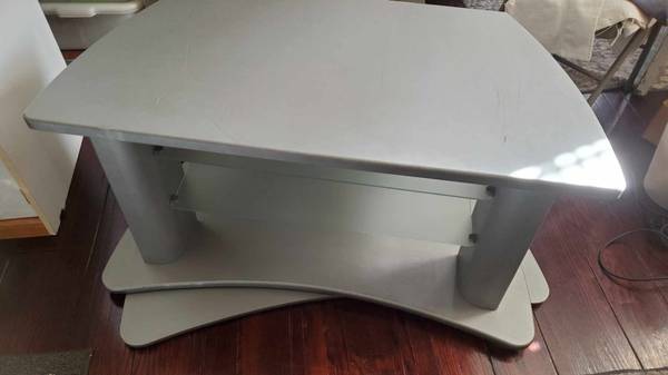 Heavy duty TV stand on wheels. Swivels a little. Good condition