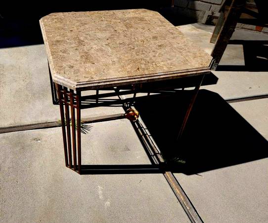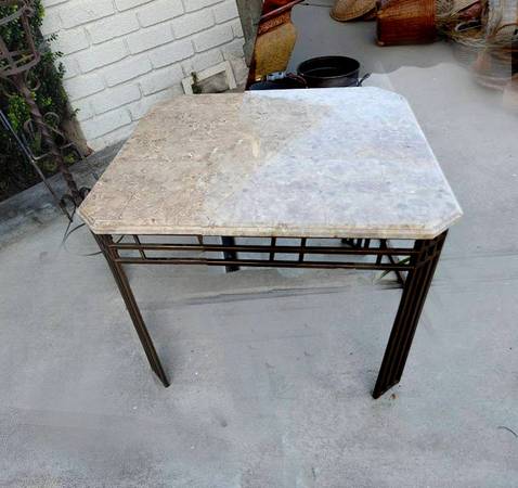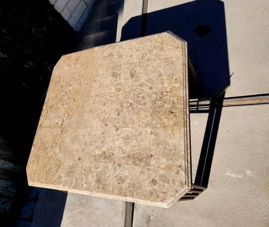 1980s Mastercraft Style Side End Table with Fossilized Stone Top
