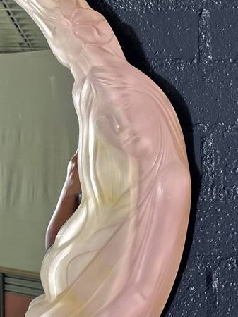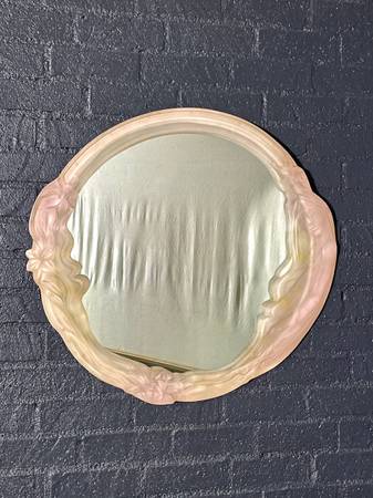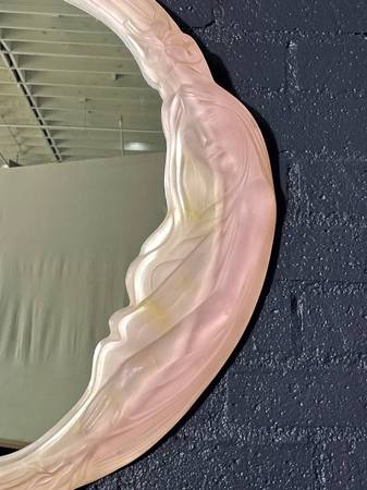 Fun Historical Fact: The Art Nouveau movement, which first flourished in Europe around 1890–1910, sought to break away from rigid historical styles by embracing flowing, nature-inspired forms. Although its peak was short-lived, the revival of Art Nouveau in the 1980s reflected a renewed fascination with sensual, sculptural design, often blending modern materials like Lucite with century-old motifs. This mirror captures that revival perfectly, merging the ethereal femininity of turn-of-the-century aesthetics with the bold experimentation of late 20th-century design.