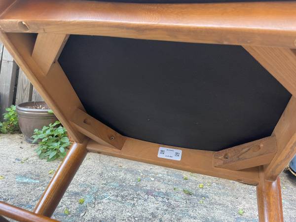 Very good to excellent vintage condition. Basic patina you’d expect from age and use. It has been reupholstered. Not by me. It looks professional. The fabric looks great. Appears to have been a tv/movie prop. It has the NBCUTV sticker on the underside. Look at the pics and check the dimensions below. Read to the bottom.