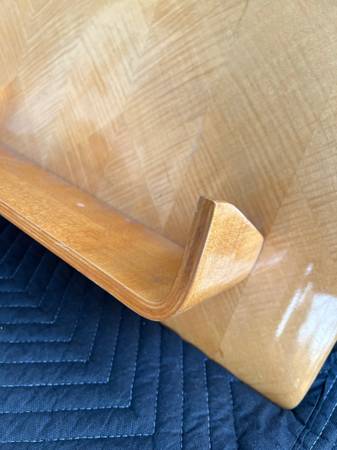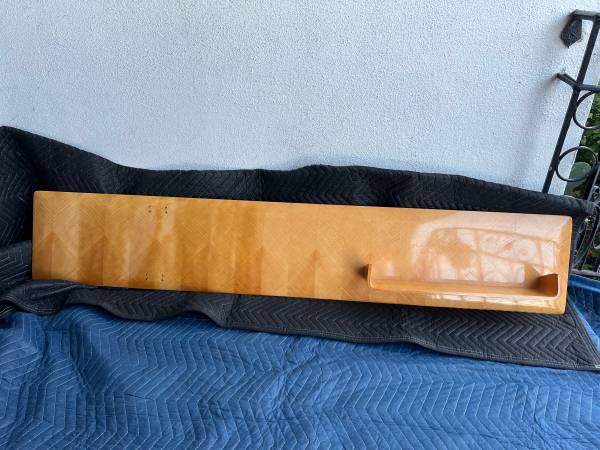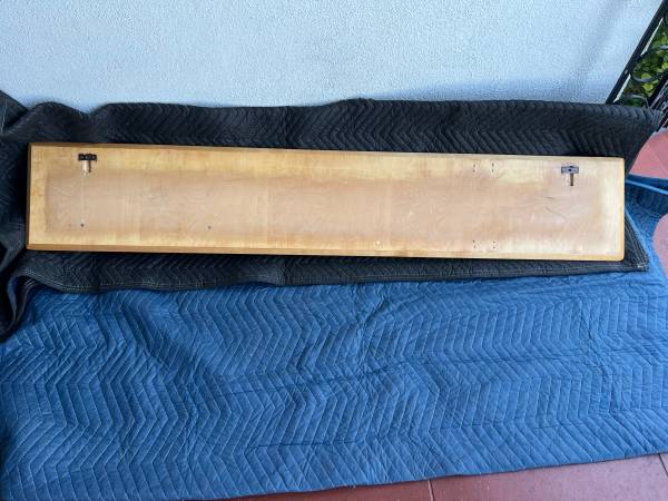 Beautiful wall mount Italian wood wall shelf. Used to have a mirror that broke- could be replaced- holes are present to hold a mirror. Otherwise just a few nicks, nice finish, no structural issues. Sold AS IS. About 65 inches long, 11 1/2 high, 5 deep.