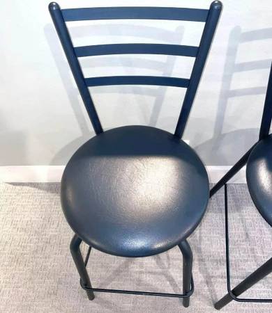 Add a touch of style to your home bar with this pair of pre-loved black bar chairs by Amisco Industries Ltd. PRICE IS FOR BOTH TOGETHER.