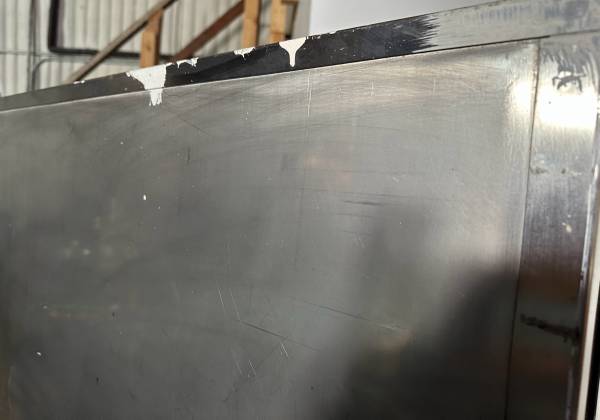 Considering its age it’s in great condition. No dents! Some paint drips on backside but easily removed with some thinner. Two glass shelves and plenty of storage.
