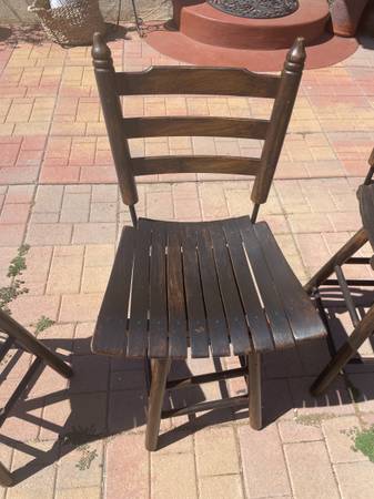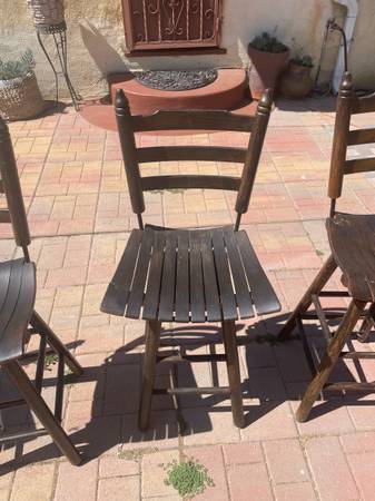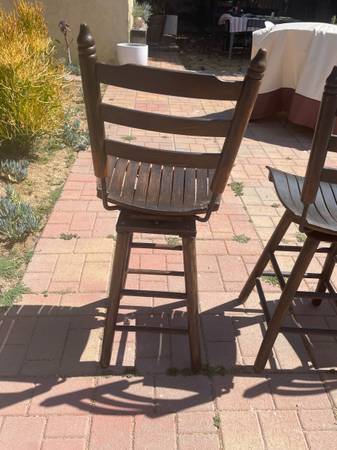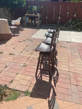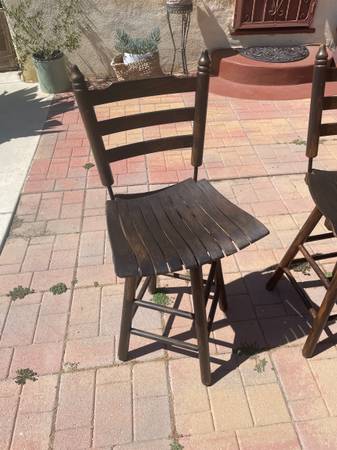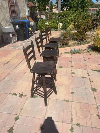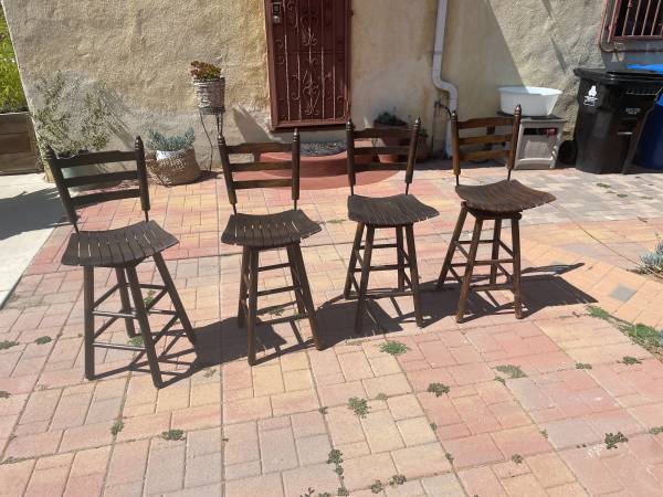 Vintage Wood Counter Height Stools Set of 4, one is broken and in need of repair (see pics) Seat height 24", back 40" $50 OBO for the set Pick up only