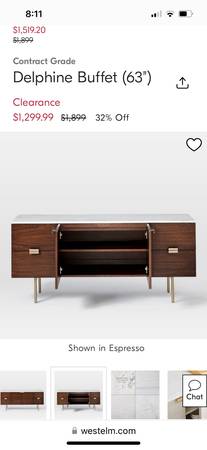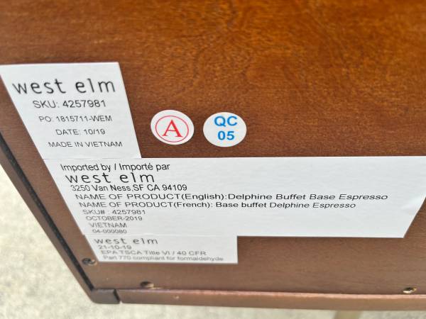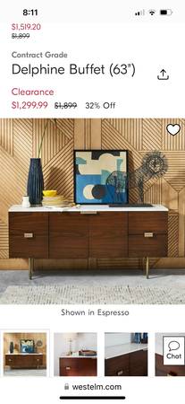 West Elm Delphine Buffet like new condition dimensions in the pictures. ‼️SERIOUS BUYERS ONLY ‼️ DELIVERY 🚚 AVAILABLE.