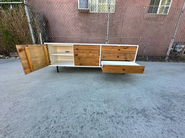 west Elm white lacquer mid century modern media console credenza has some marks on top for used but overall in good condition heavy solid and sturdy dimensions in the pictures. ‼️SERIOUS BUYERS ONLY...