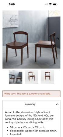 west Elm mid century modern chairs in good condition solid and sturdy pieces dimensions in the pictures. ‼️SERIOUS BUYERS ONLY ‼️ DELIVERY 🚚 AVAILABLE.