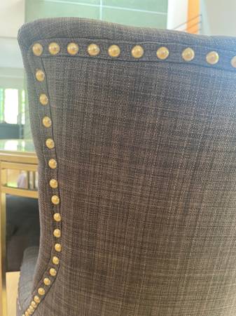 Set of 4 chairs New Tufted fabric covered Brushed gold tone hardware Retail $650 as a set on wayfair