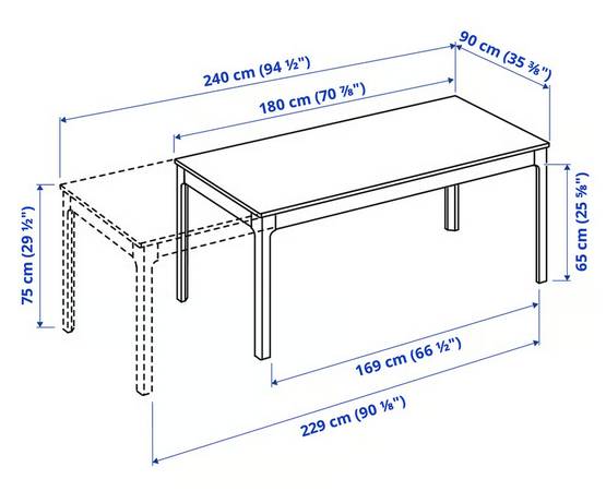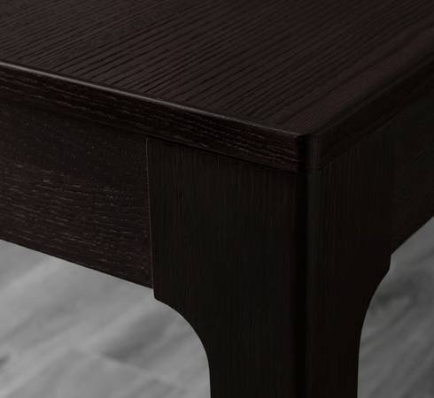 Extendable dining table. Fits 6-8, 8-10 with expansion. Well taken care of. The link only shows a different (cheaper and darker color) wood. We are currently using it as an office desk for two....