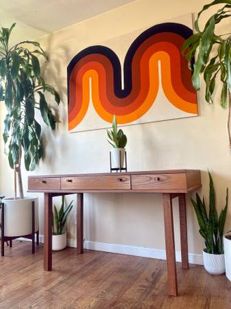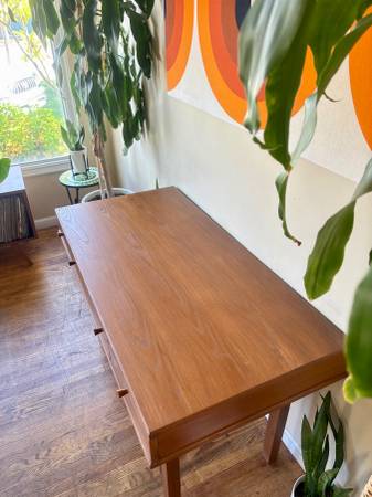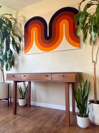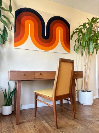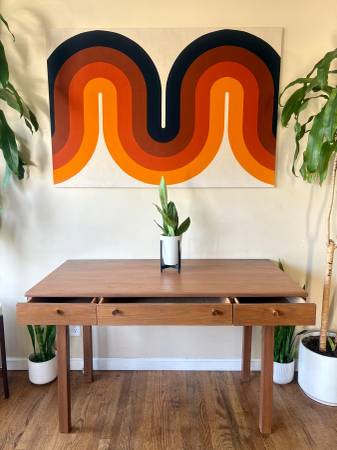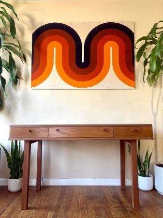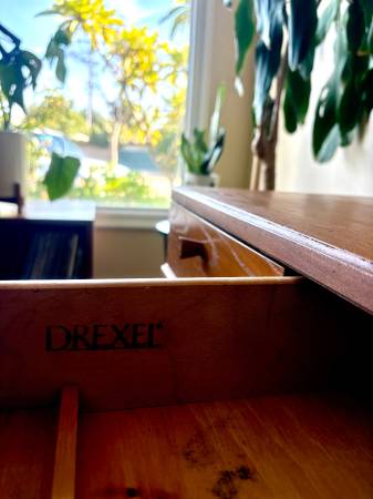 Early Access!! Black Friday Deals!🎴SAVE 25% OFF! Lovely mid-century modern Drexel desk. Features 3 drawers for easy storage, and a beautiful gorgeous Golden Oak wood grain! Perfect for your apartment or corner nook! Professionally refinished and ready to go!