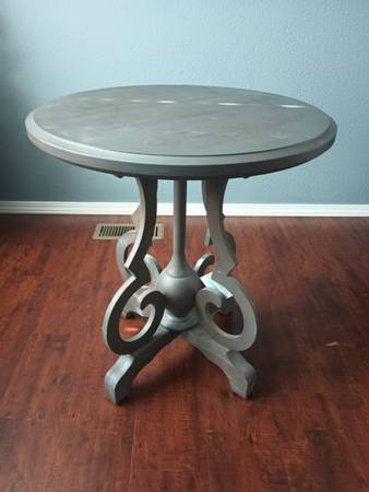 Table, side table brand new sturdy wooden table with ornate designs very unique. Height 26 inches width 24 inches. Round table top. Table, dinning table, bistro table, side table.